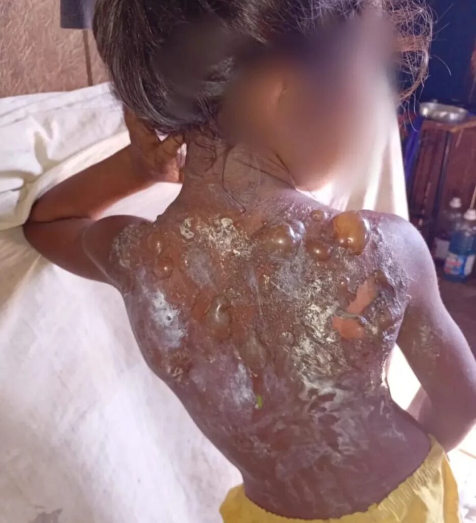 Imagens que viralizaram em grupos de aplicativos de mensagens instantâneas mostram a severidade das queimaduras na criança.