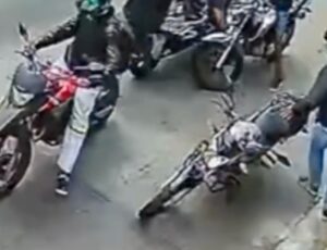 Bandidos cercam motoqueiro e roubam moto de luxo em plena luz do dia; veja vídeo