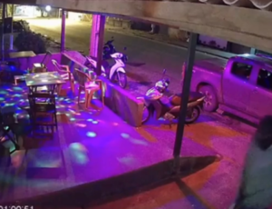 Brasil - Imagens de câmeras de segurança registraram o momento em que um suspeito encapuzado invadiu um bar e executou…