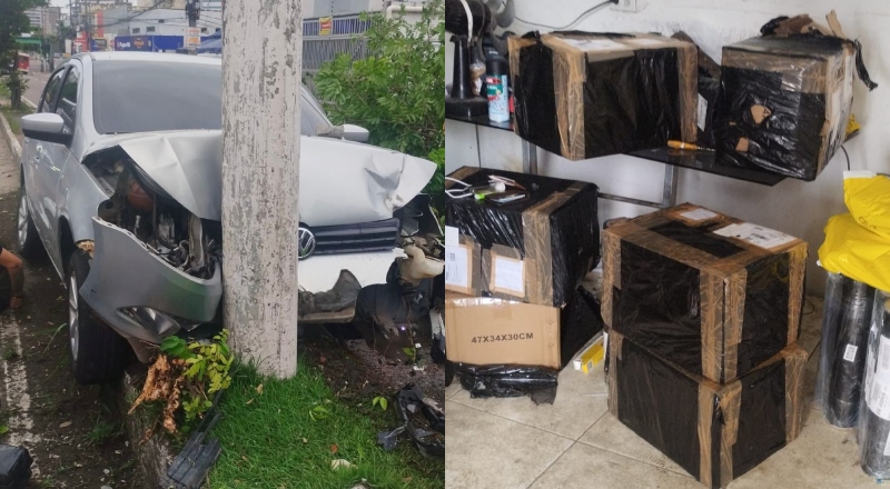 Perseguição policial termina em acidente, prisões e 200 quilos de drogas apreendidos em Manaus