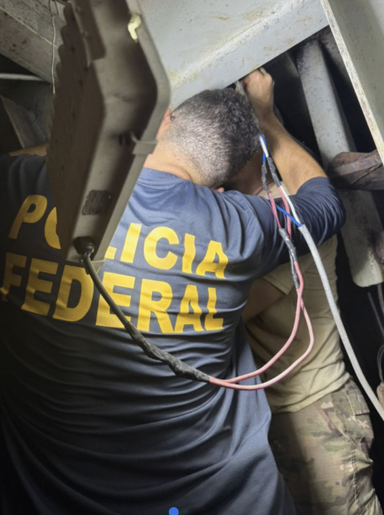 Durante uma fiscalização em uma embarcação atracada no porto da cidade, o cão de faro apresentou mudança de comportamento ao se aproximar do porão. Os agentes realizaram uma inspeção e localizaram entorpecentes ocultos, soldados na estrutura e nas canaletas da embarcação.