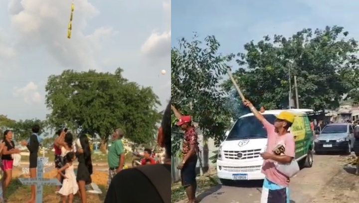 Mesmo com todo histórico macabro, o jovem foi enterrado com balões brancos, fogos de artifício e muitas homenagens. A morte dele será investigada pela Delegacia Especializada em Homicídios e Sequestros (DEHS).