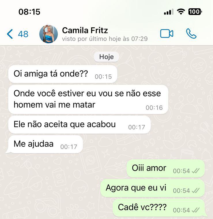 Uma amiga de Camila revelou um print em que, minutos antes de ser morta, a jovem pediu ajuda, e temia pela sua vida.