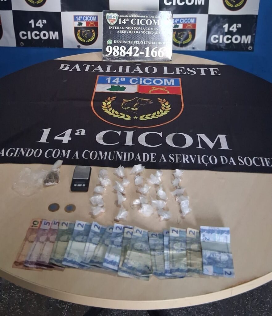 A primeira ação ocorreu na manhã de sexta-feira, por volta das 11h40, na rua dos Cosmos, bairro Jorge Teixeira 2, zona leste. Durante patrulhamento, policiais da 14ª Companhia Interativa Comunitária (Cicom) abordaram um homem em atitude suspeita e apreenderam 25 trouxinhas de oxi, uma porção de maconha, uma balança de precisão e R$ 46. O suspeito foi conduzido à 14ª Delegacia Interativa de Polícia (DIP).