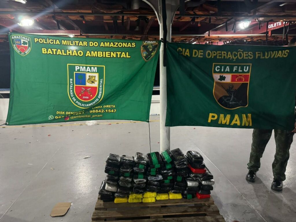 Manaus – Na noite desta terça-feira (21), uma ação conjunta entre a Polícia Militar do Amazonas, por meio do Batalhão de Policiamento Ambiental (BPAMB), da 1ª Companhia Terrestre, 2ª Companhia de Operações Fluviais e da Companhia Independente de Operações com Cães (CIPCaes), resultou na apreensão de 75 kg de substâncias entorpecentes nas imediações da Orla Fluvial de Manaus. A operação foi desencadeada após denúncias anônimas sobre uma embarcação de grande porte, com origem no município de Tabatinga (AM), que estaria transportando drogas.
