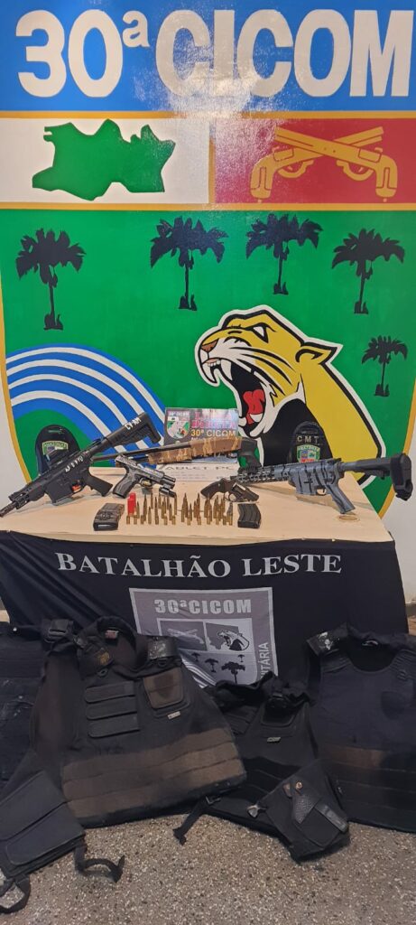 Manaus – A Polícia Militar do Amazonas (PMAM), por meio da 30ª Companhia Interativa de Comunitária (Cicom), prendeu seis pessoas, apreendeu armas de grosso calibre e coletes balísticos que seriam usados durante confronto entre facções, no início da madrugada desta terça-feira (27/08).