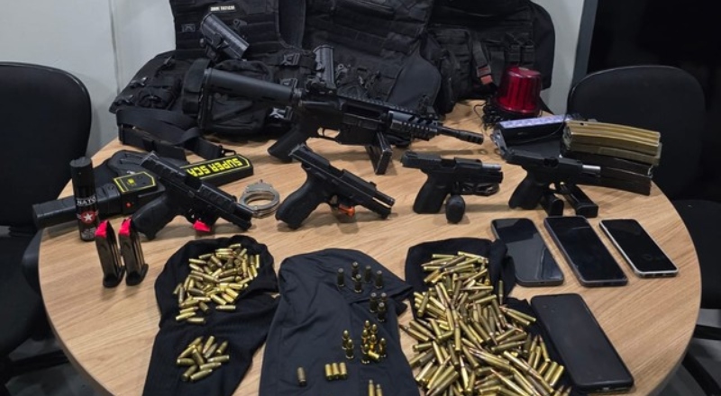 A apreensão incluiu pistolas, fuzil, munições de diversos calibres, algemas, celulares, detector de metal e um bote de alumínio com motor de 300 HP. A polícia não informou o paradeiro dos criminosos que seriam os proprietários da droga.