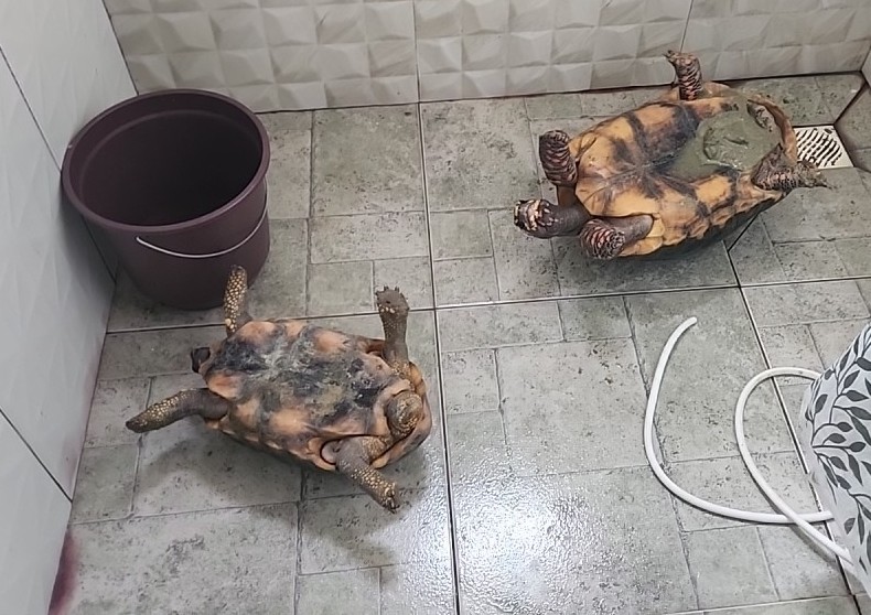 Em outra ocorrência, vizinhos denunciaram o abandono de uma cadela, que foi encontrada extremamente magra e se alimentando do cadáver de outro cachorro. O animal foi resgatado e levado para cuidados veterinários.