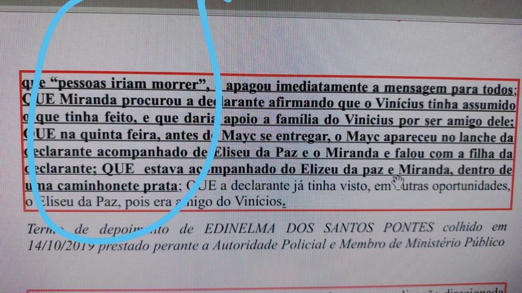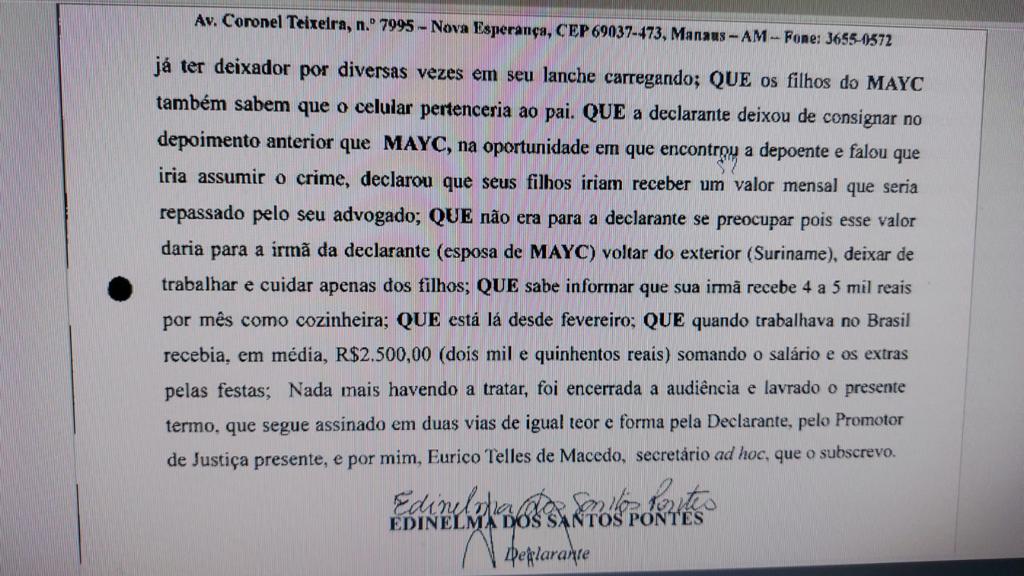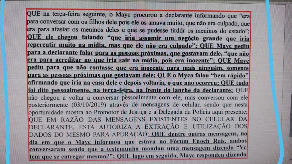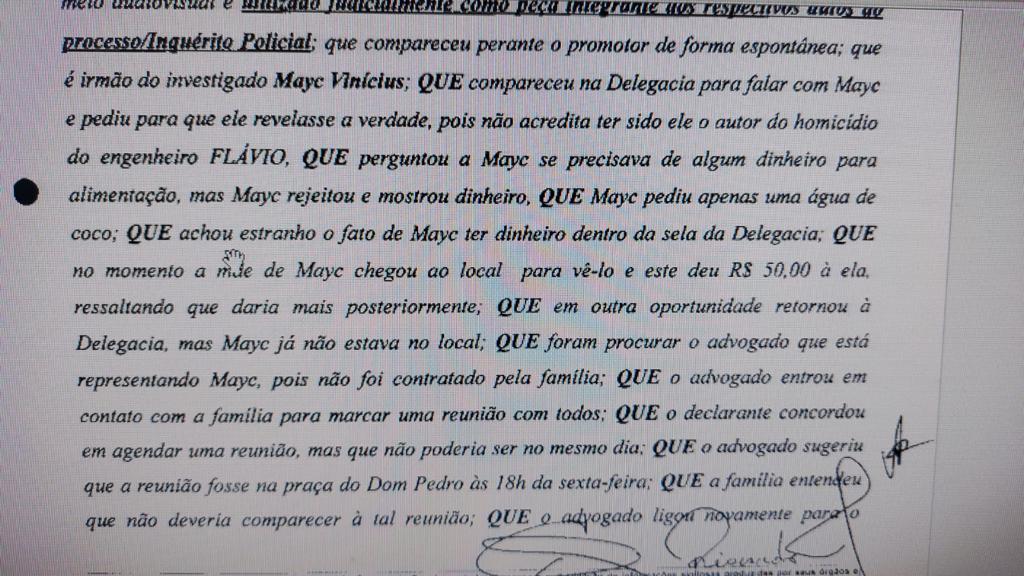 O depoimento de Edinelma, apresentado ao Grupo de Atuação Especial de Combate ao Crime Organizado (GAECO), sugere que Mayk se viu pressionado a assumir o crime do engenheiro em troca de algum tipo de benefício financeiro. Segundo Edinelma, ele teria até enviado mensagens a seus filhos pedindo que não acreditassem nas versões da mídia, reiterando que era inocente. Veja na íntegra clicando aqui: