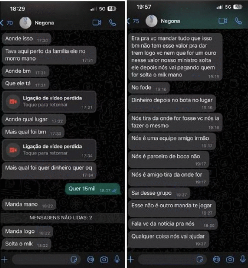 A investigação aponta que o pedido de resgate teria sido feito por agentes da própria segurança pública – reforçando suspeitas de corrupção e negociação direta entre criminosos e policiais.