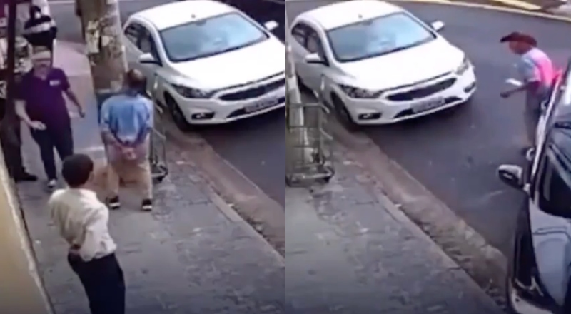 Imagens de câmeras de segurança mostram o momento em que um homem encapuzado se aproxima do local usando máscara e moletom preto e dispara contra a vítima à curta distância. O segurança cai imediatamente, e o suspeito volta a atirar antes de fugir do local.