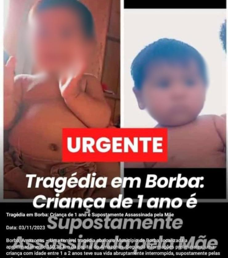 Amazonas – Um bebê de 1 ano de idade, identificado como Gael, foi assassinado na manhã desta sexta-feira (3) no município de Borba, localizado no Amazonas. A mãe e o namorado, são os principais suspeitos.