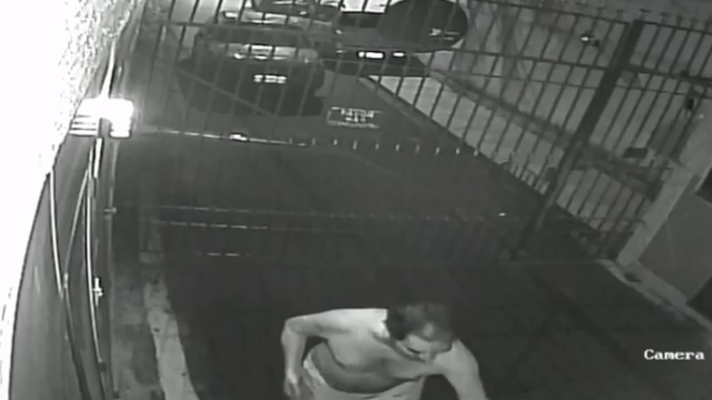 Câmeras de segurança registraram o momento da agressão e mostram a criança, que estava andando de patinete nas áreas comuns do condomínio, sendo abordada pelo homem.