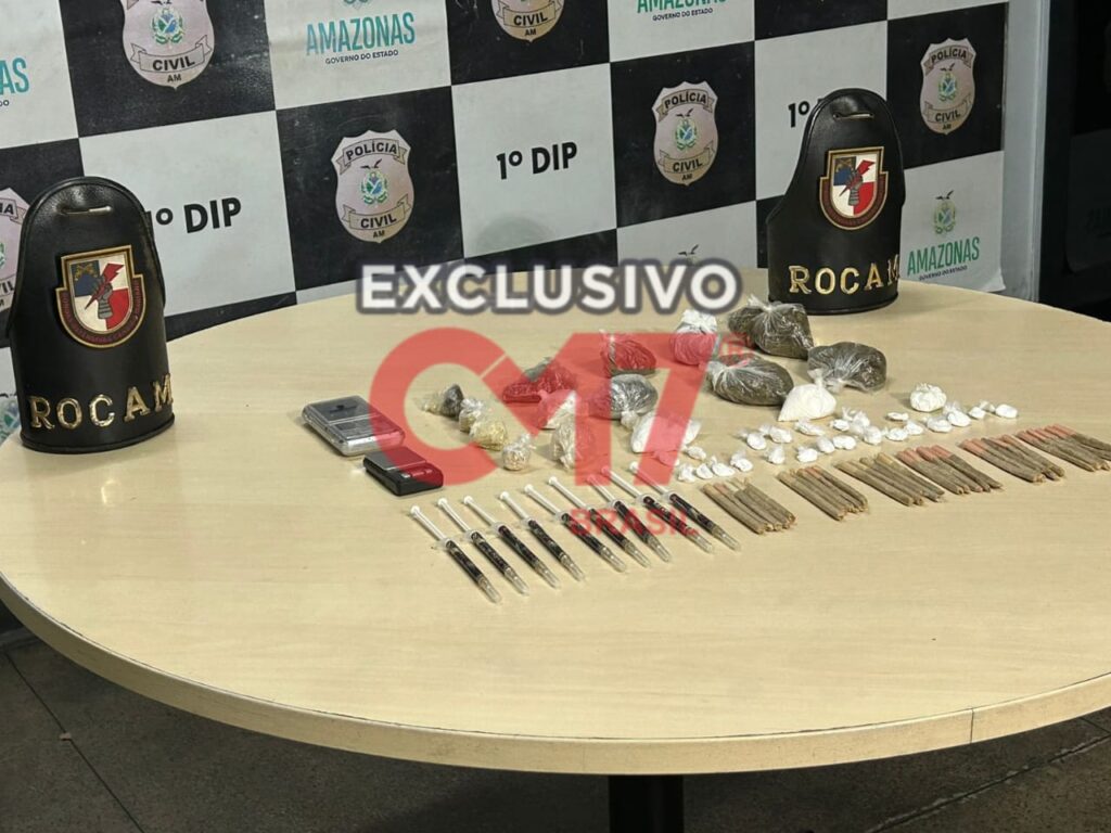 Ele estava portando uma bolsa que continha uma variedade de entorpecentes, incluindo maconha e cocaína embaladas em saquinhos plásticos. Além disso, foram encontradas seringas com um óleo específico para ser usado com outras substâncias.