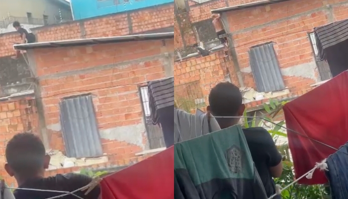 A população, que presenciou a captura do suspeito, filmou toda ação policial. De acordo com informações de testemunhas, o rapaz tentou fugir pelo telhado de vizinhos e acabou levando um tiro.