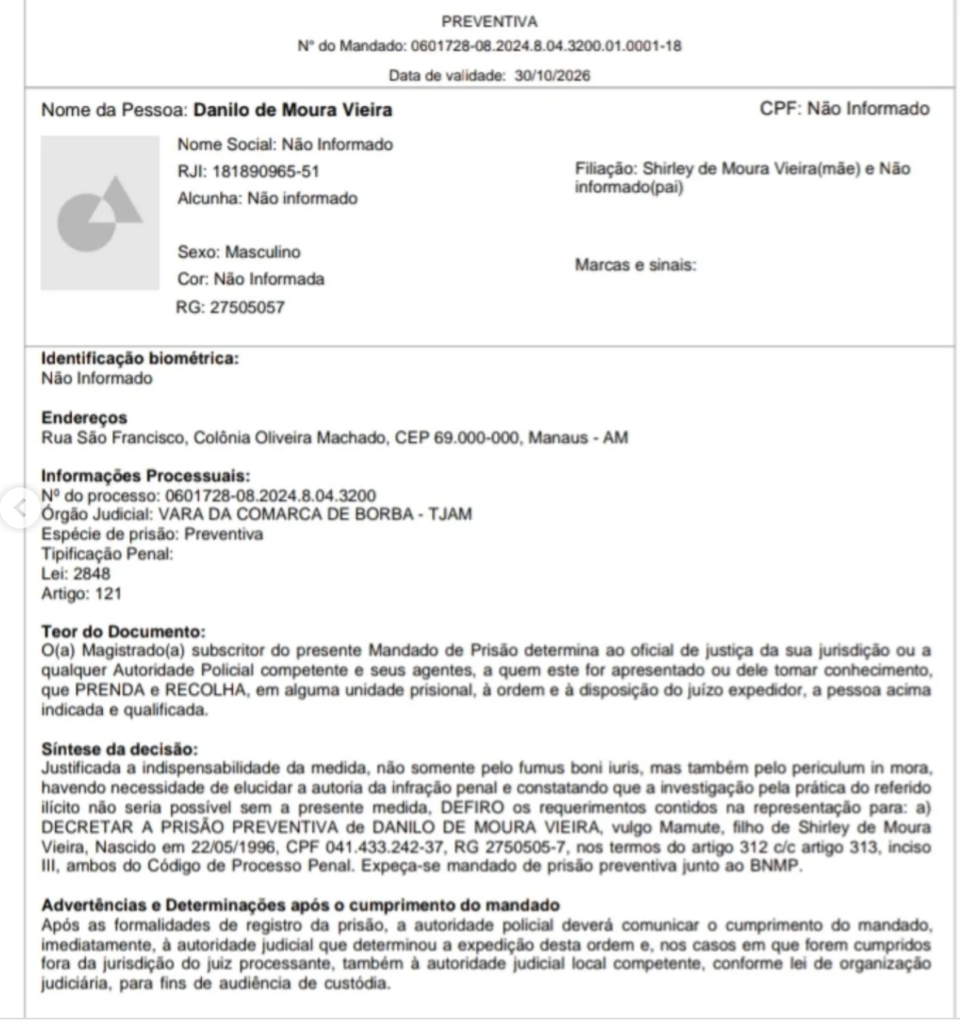 Danilo, de acordo com informações da polícia, era considerado um dos criminosos mais temidos de Borba, município localizado no interior do Amazonas. Contra ele pesavam diversas acusações graves, incluindo dois homicídios, tortura e porte ilegal de arma de fogo. Ele também era alvo de um mandado de prisão preventiva em aberto.