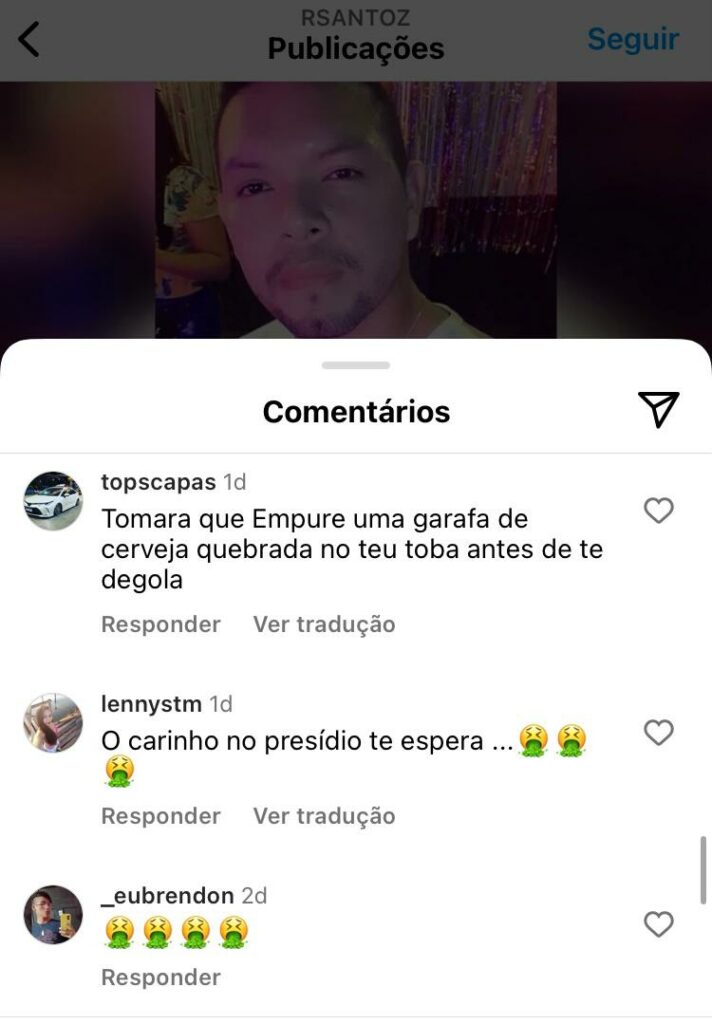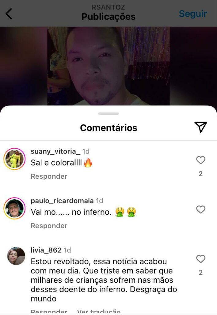 Internautas mostraram a revolta com o caso no perfil dos criminosos.