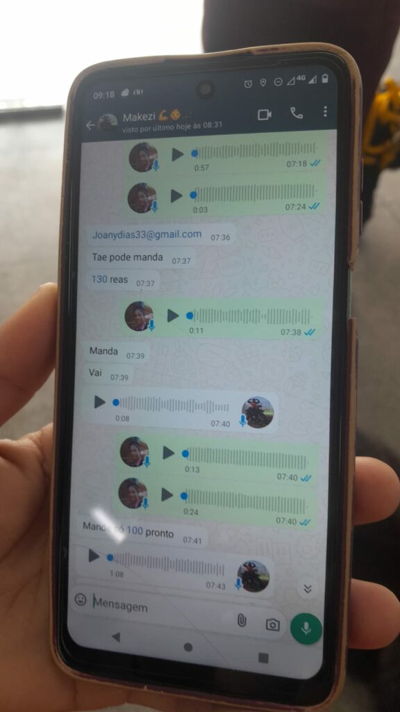 A trabalhadora ainda chegou a dar R$ 20,00 para o mototaxista, que a deixou ir embora. No entanto, ele permaneceu ameaçando a mulher por meio de mensagens, e cobrando o valor de R$ 130,00.