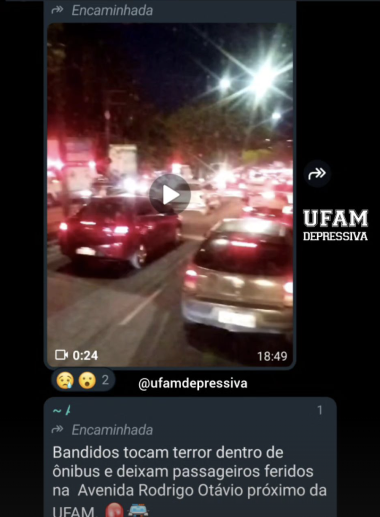 Momentos antes, os bandidos já haviam causado pânico dentro do ônibus, deixando passageiros feridos na Avenida Rodrigo Otávio, próximo à UFAM. A brutalidade do ataque e a ousadia dos criminosos surpreenderam a comunidade universitária e os residentes da região.
