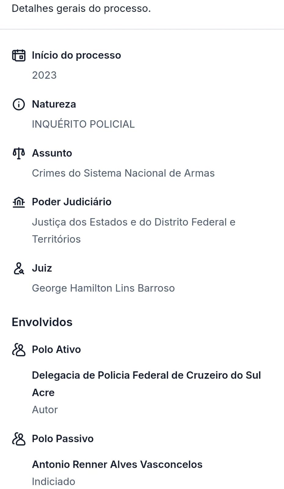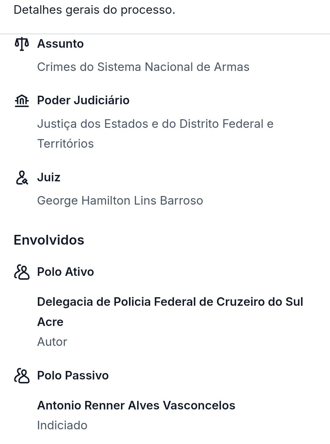 E se tratando de crime, Renner tem uma ficha criminal extensa. Em um deles é na Polícia Federal do Cruzeiro do Sul, um por porte ilegal de arma e outro por Maria da Penha após ter agredido sua ex-mulher. Renner também tem processo no Ministério Público por calúnia, movido por Rodolfo, além de ameaça contra um cidadão do município e até abandono de emprego. Será que Renner deixou seu emprego para virar blogueiro de página falsa?