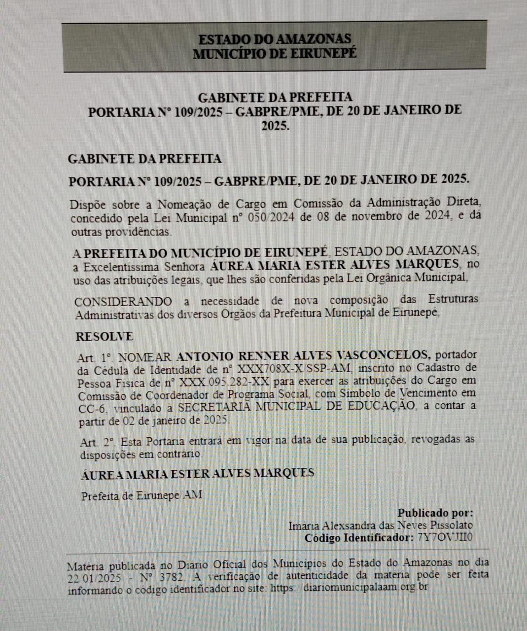 A denúncia leva o nome de Ery Conrado Neto, nomeado técnico de suporte em T.I na Secretaria de Comunicação; e Antônio Renner Alves Vasconcelos, recentemente nomeado ao cargo de coordenador de programa social vinculado à Secretaria Municipal de Educação. No entanto, para ser coordenador de um programa social na secretaria de educação, é comum que o profissional tenha nível superior, e Renner tem apenas ensino fundamental completo, o que seria incompatível com a qualificação exigida para o cargo.