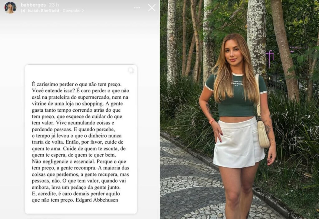 Horas antes de ser morta, a jovem publicou em suas redes sociais uma mensagem que hoje soa como um triste presságio. “Por favor, cuide de quem te ama. Cuide de quem te escuta, de quem te espera, de quem te quer bem. Não negligencie o essencial. O que tem valor, quando vai embora, leva um pedaço da gente junto”, escreveu.