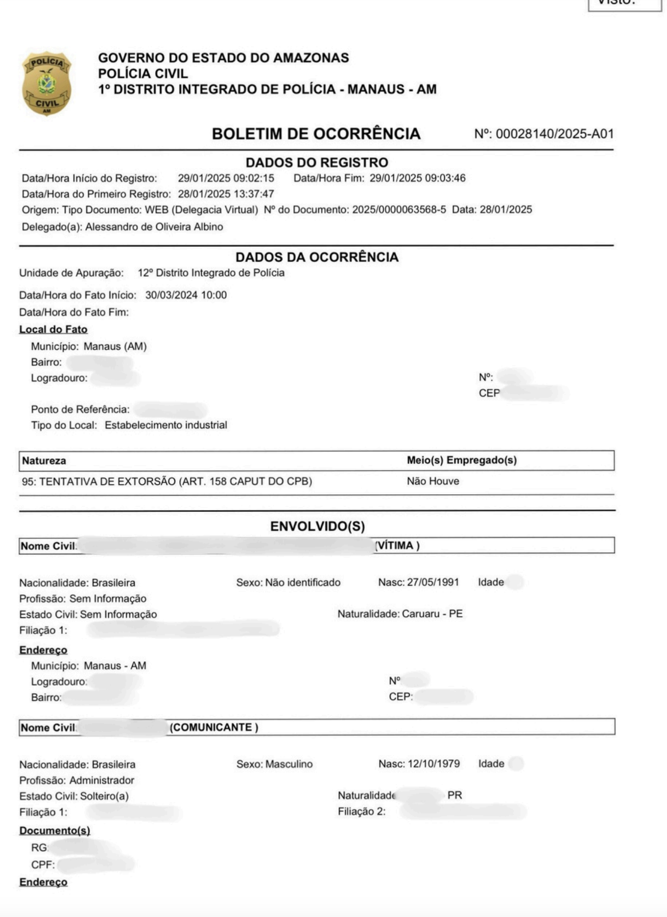 O fato de o B.O. ter sido registrado como “tentativa de extorsão” e ainda não ter sido acompanhado de provas consistentes levanta mais dúvidas da veracidade da acusação. O texto do boletim fala de um período específico (março de 2024), mas as evidências que sustentariam a acusação são praticamente inexistentes.