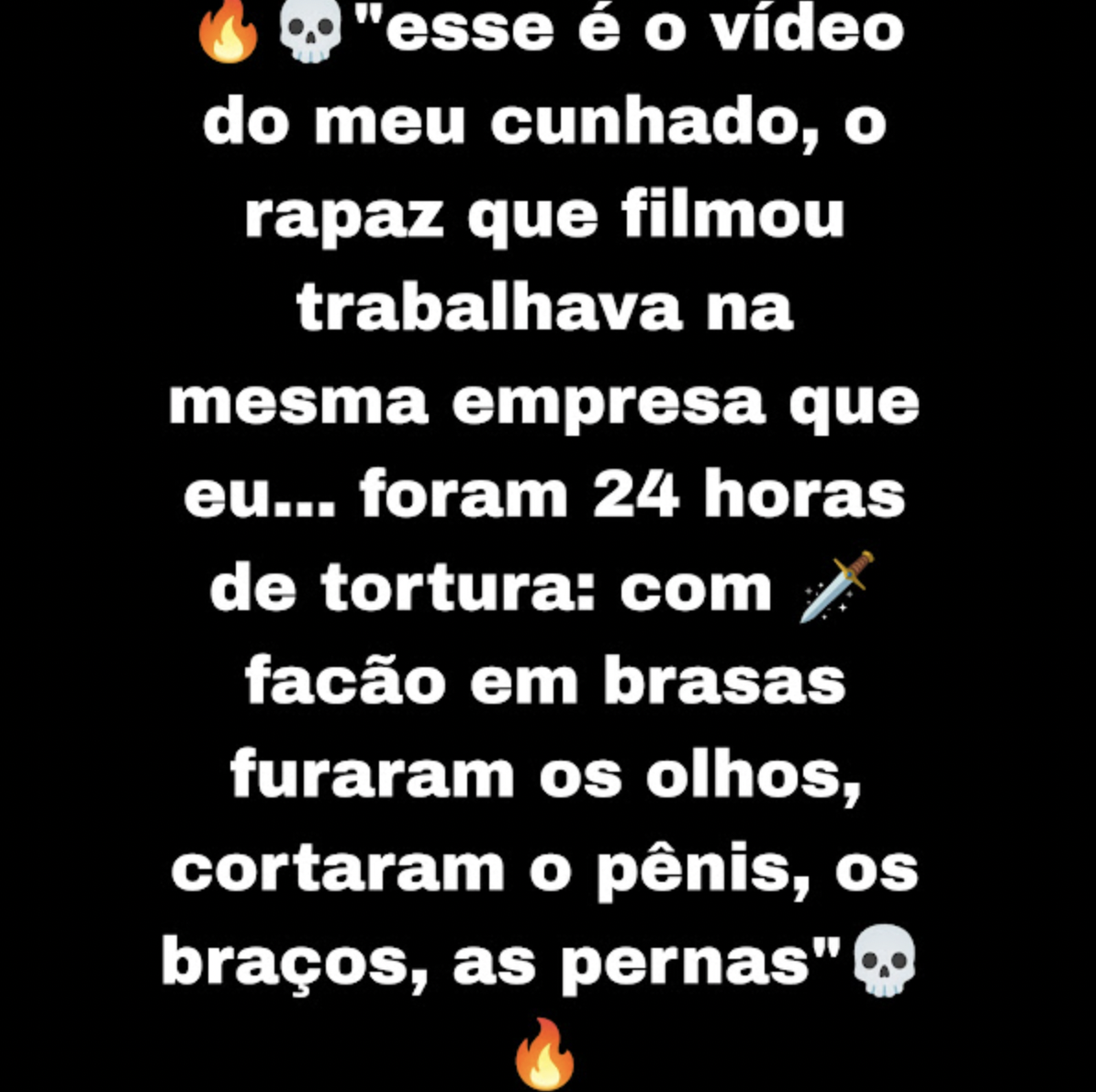 Ainda segundo informações, o homem teve o pênis cortado e os olhos furados. Após ser morto, os criminosos gravaram um vídeo e divulgaram na internet. No vídeo, eles falam que o homem morreu por ter se metido com mulher casada.