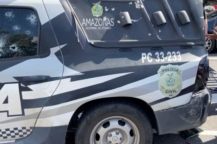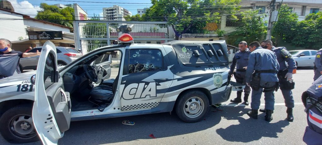Uma viatura da Polícia Civil foi alvo de um ataque criminoso na tarde desta quinta-feira (6), na frente do Fórum Ministro Henoch da Silva Reis, localizado na avenida Paraíba, no bairro São Francisco, zona Sul de Manaus.