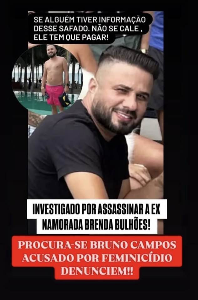 O caso já está sob a investigação do Departamento Estadual de Homicídios e de Proteção à Pessoa (DHPP) de Santos. O principal suspeito do crime é o ex-marido da vítima, identificado como Bruno Campos, que não foi localizado. Segundo a Polícia Civil, responsável por elucidar caso, o ex de Brenda não aceitava o fim do relacionamento.