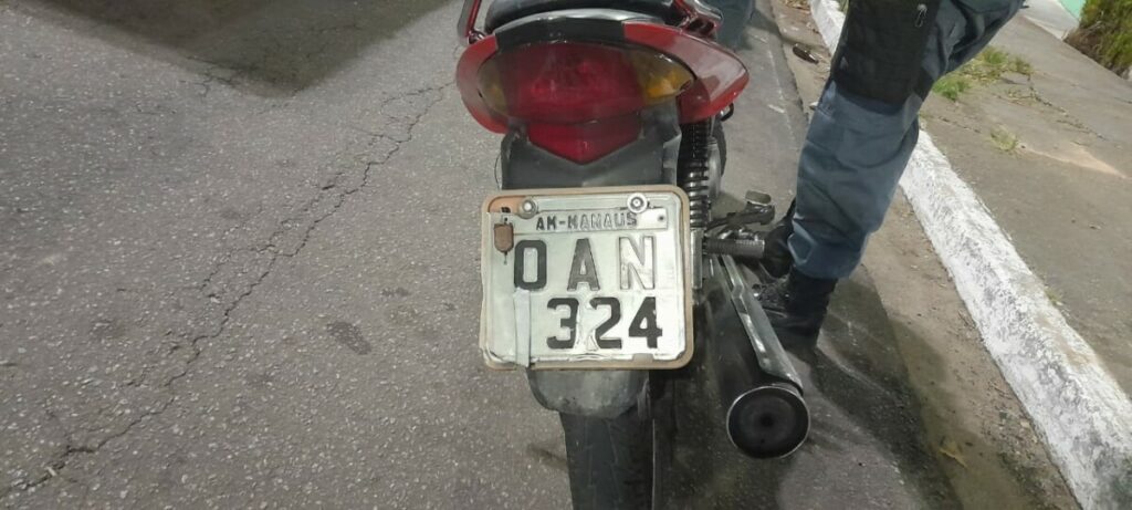 Foi constatado pela Polícia que a moto utilizada pela vítima, está com a placa adulterada.