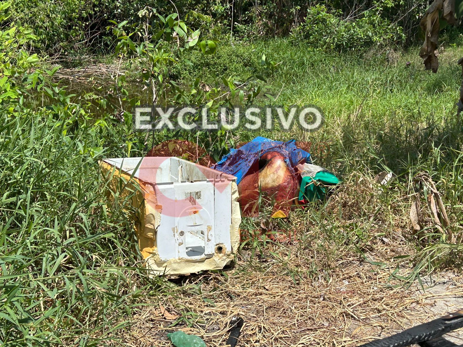 Assim que os populares avistaram a carcaça do eletrodoméstico, ligaram para a polícia, pois já sabiam que se tratava de um corpo.