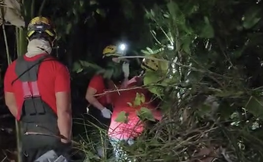 Militares do Corpo de Bombeiros do Amazonas (CBM-AM) estava atuando no resgate e retirada do corpo na área de mata.