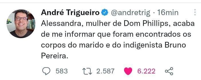 Urgente: corpos de jornalista Dom Phillips e indigenista foram encontrados amarrados em árvore, afirma The Gardian