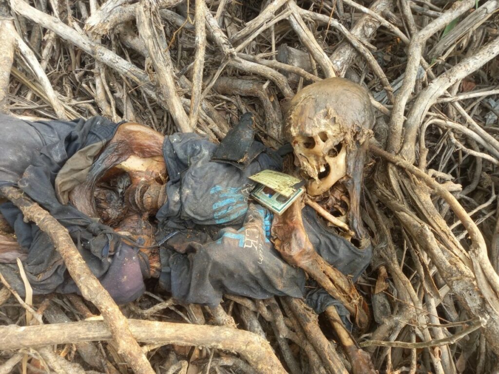 Junto ao esqueleto, que ainda estava com roupas, foi encontrado uma carteira de identidade e outros documentos.