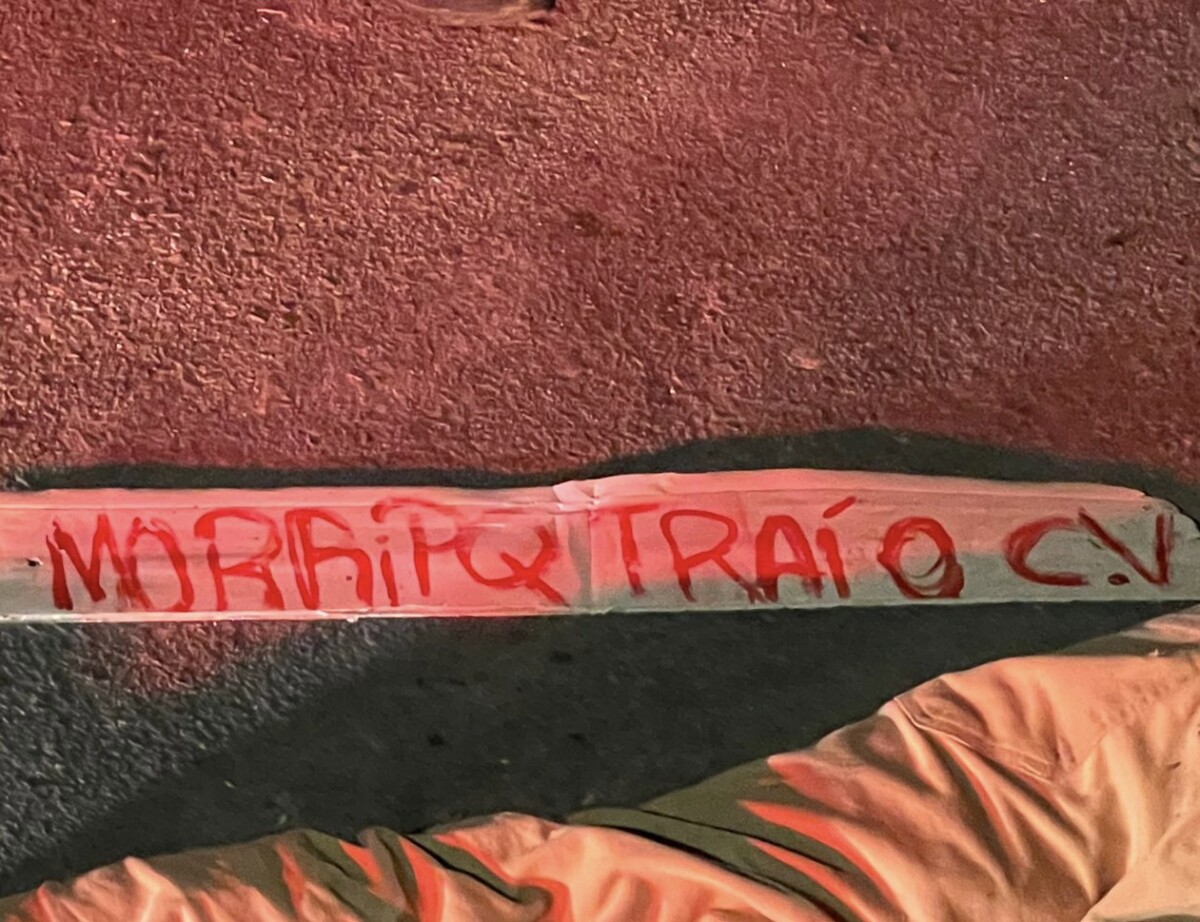 Ao lado do corpo, foi deixado uma placa com o recado: “Morri porque trai o CV”.