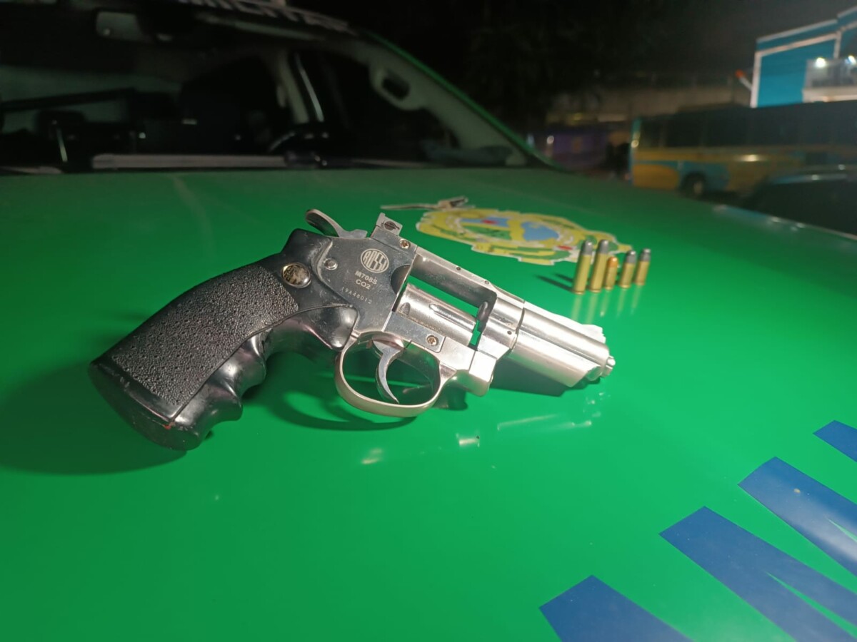 As viaturas da PM ao notarem a ação, rapidamente fizeram o cerco e prenderam os elementos que estavam de posse de um revólver calibre 38.