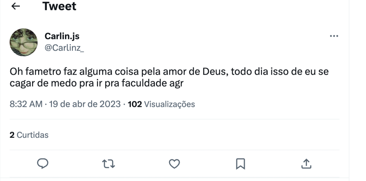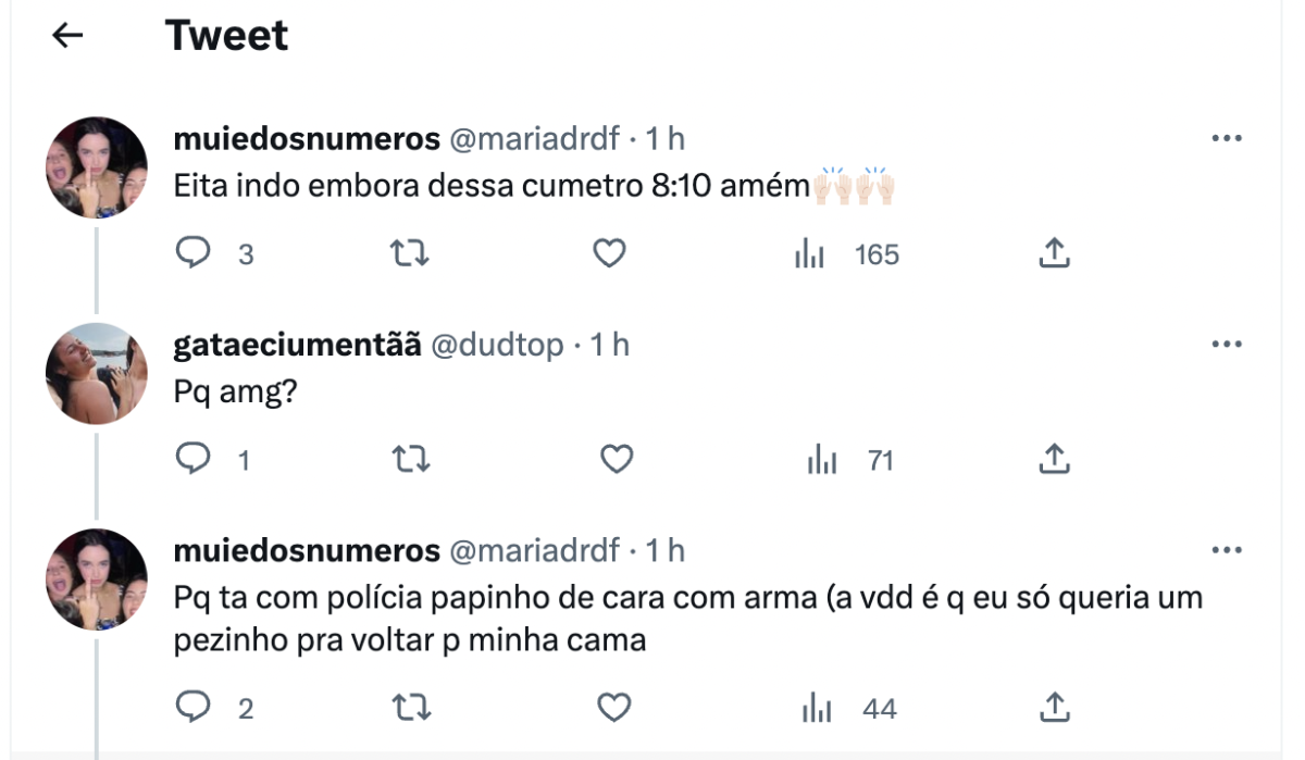 Até o momento, o Centro Universitário Fametro não se manifestou sobre o caso, que inclusive está sendo bastante comentado no Twitter. “Mais um dia que vou embora cedo. Tá com polícia e com papinho de que tinha um cara armado”, escreveu a estudante Maria.