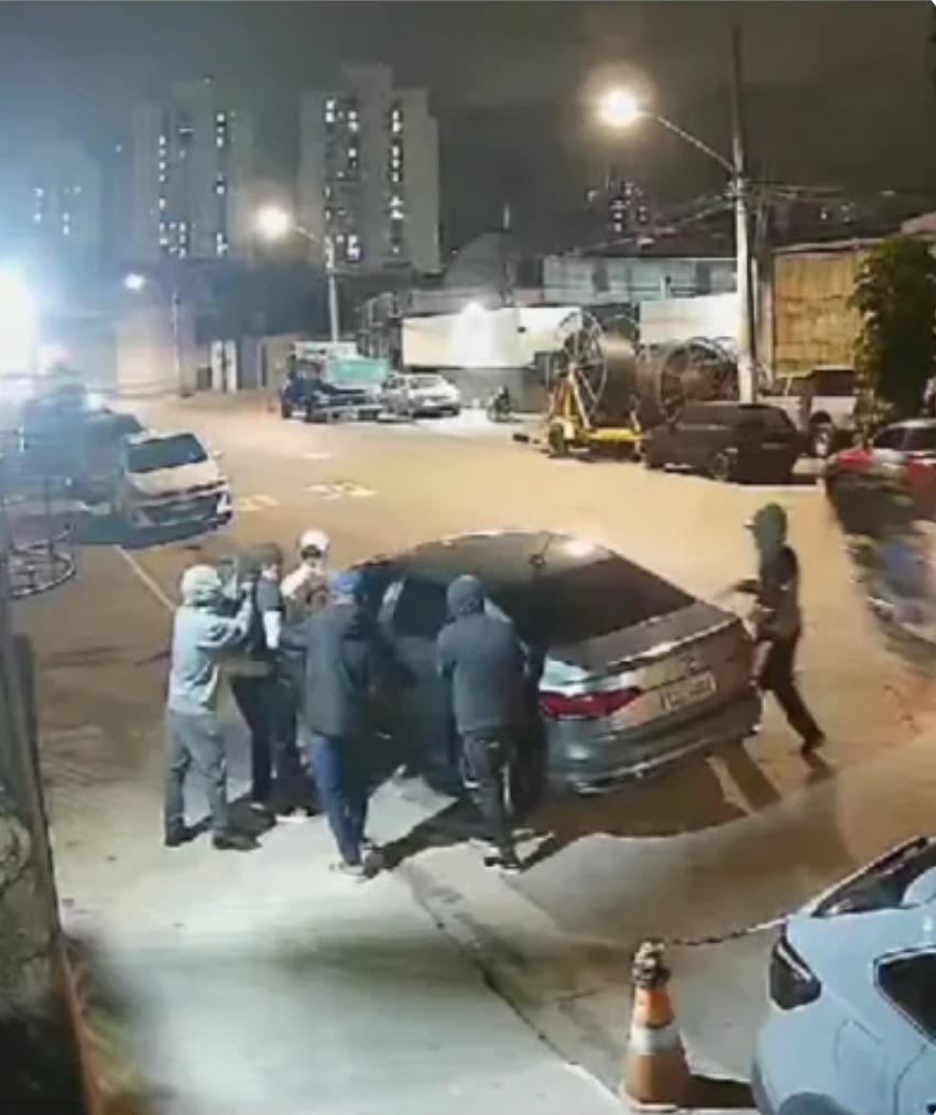 Nas imagens, é possível ver que a vítima desce do veículo e fica na calçada à espera da suposta acompanhante, quando um homem chega por trás, o rende e aponta uma arma na sua cabeça.