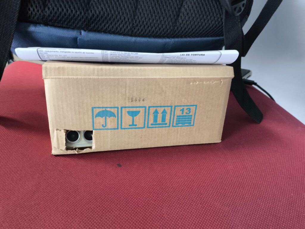 Ao perceber a presença da câmera filmando, a mulher agiu rapidamente, retirando o celular e a caixa e se dirigindo para denunciar o homem.