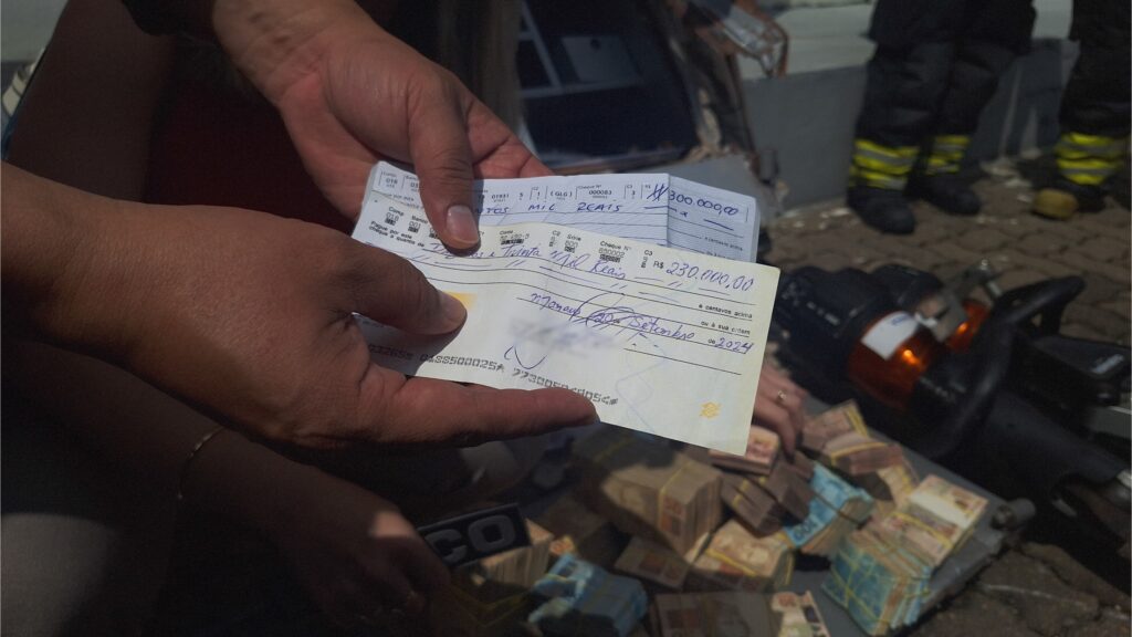 Durante buscas em imóveis ligados ao vereador, os investigadores localizaram um cofre contendo R$ 300 mil em espécie e quatro armas de fogo, incluindo um fuzil. Os autos também registram indícios de agiotagem, com imóveis utilizados como garantia em supostos empréstimos irregulares.