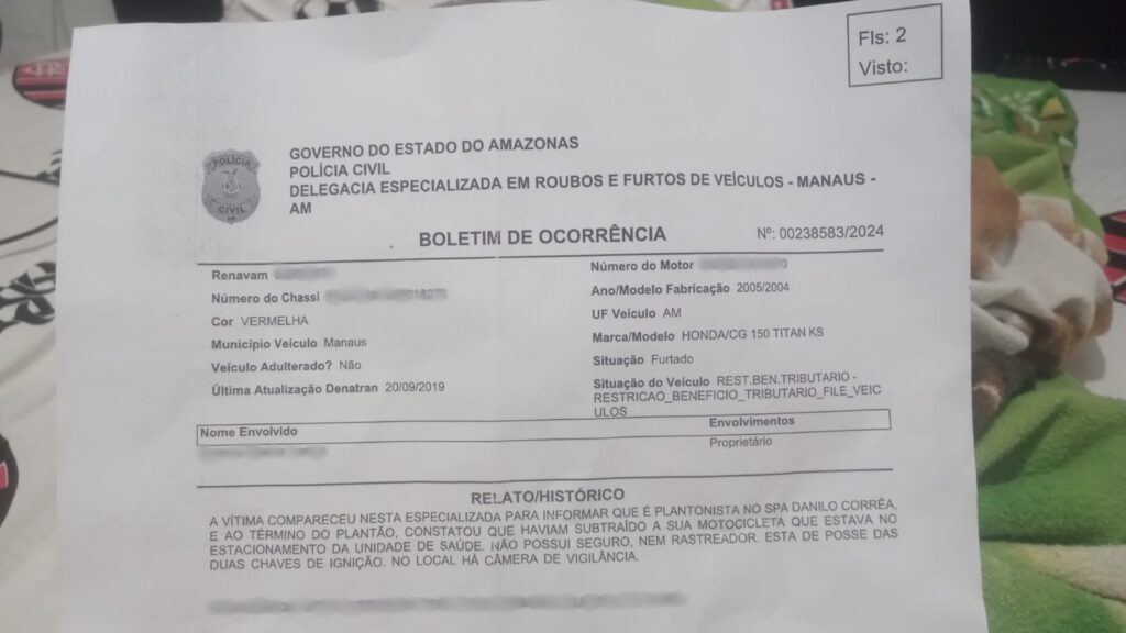 O proprietário da motocicleta é plantonista da unidade de saúde e, ao término do serviço, percebeu que seu veículo havia sido roubado.