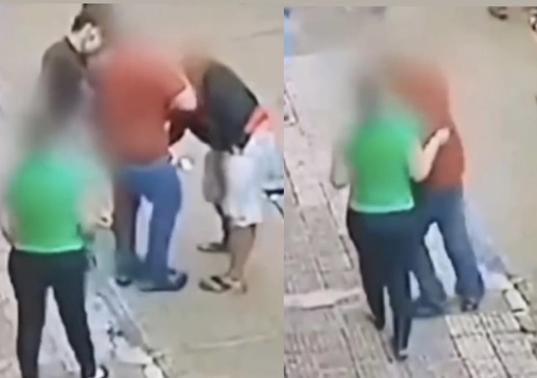 Câmeras de segurança registraram imagens do momento onde é possível ver um trio de criminosos abordando uma família que havia acabado de comprar em uma loja. Eles anunciam o assalto e já saem fazendo uma revista por completo em cada uma das vítimas, levando celulares, carteiras, cartões de crédito, cordões e bolsas.