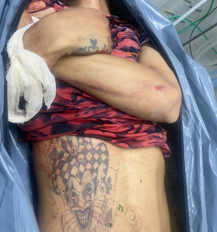 O nacional possuía uma tatuagem na barriga com o rosto de palhaço, que no mundo do crime significa é “matador de policiais”.