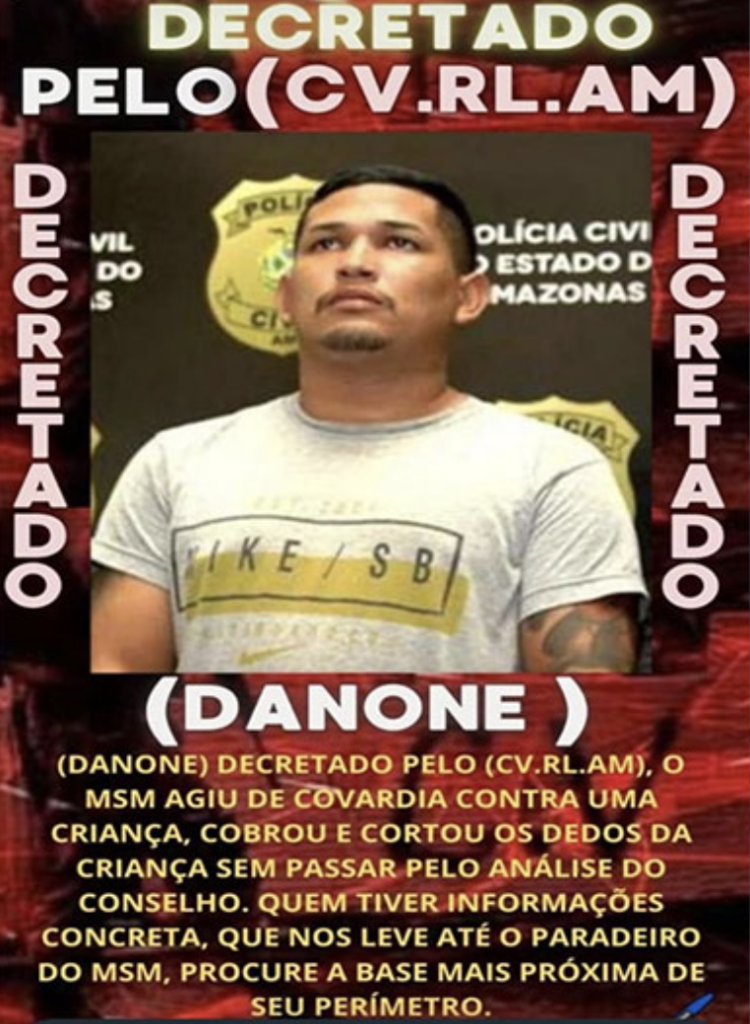 Manaus – Viralizou, nesta segunda-feira (19), um comunicado atribuído ao Comando Vermelho (CV), em que a organização criminosa “decreta” a morte de vulgo ‘Danone’, traficante que pertence à mesma facção.