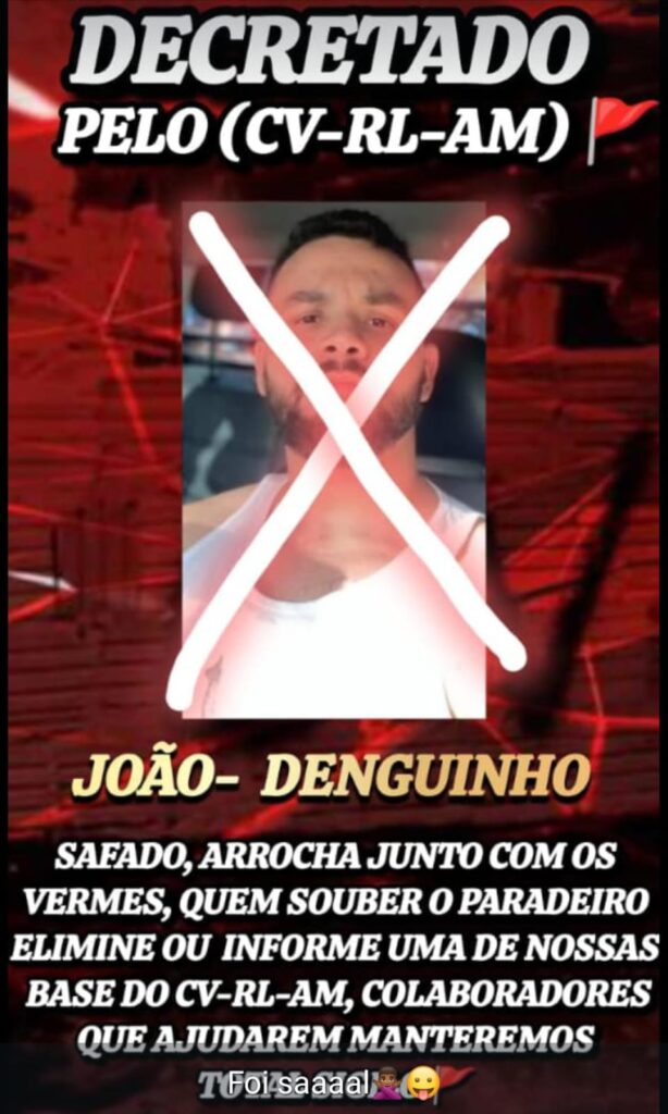Vulgo ‘Denguinho’, que estava decretado pelo CV, é assassinado a tiros no AM; veja vídeos