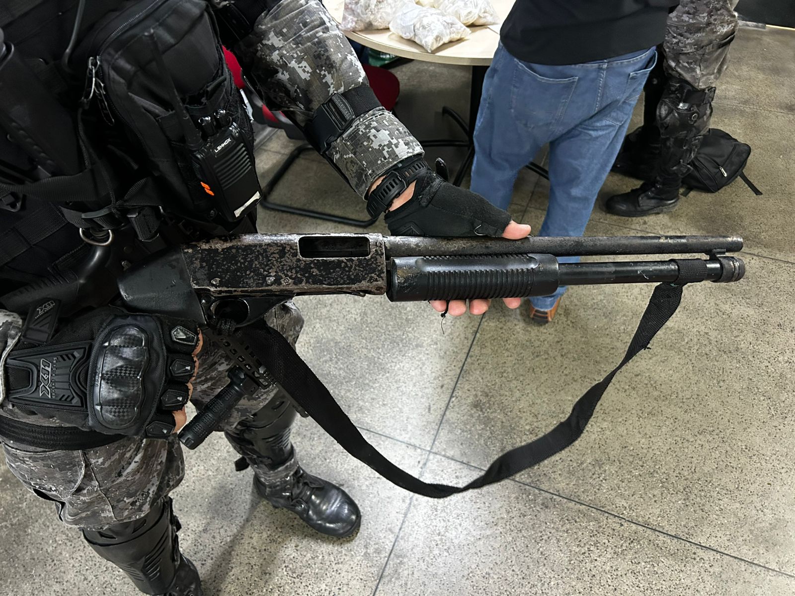 Durante a abordagem, os policiais encontraram com ele uma mochila contendo cocaína, uma arma de calibre 12 e grande quantidade de drogas embaladas.Ainda durante a ocorrência, ele levou os policiais até um fundo falso em um banheiro de uma residência próxima, onde foi localizado o restante das drogas.
