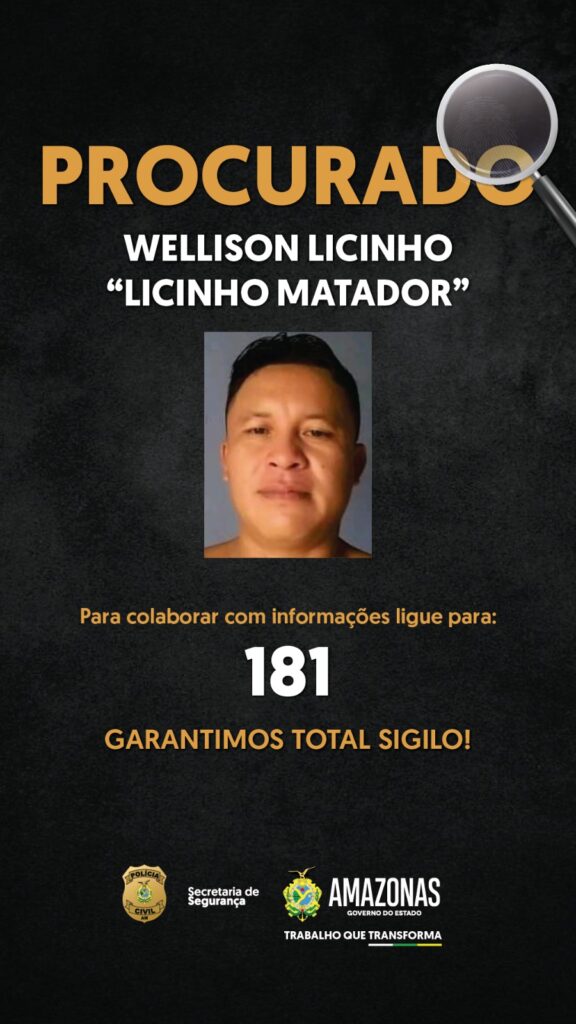 A PC-AM solicita que qualquer informação sobre o paradeiro de Wellison Rosemberg Rodrigues dos Santos seja repassada pelo número 181, da Secretaria de Estado de Segurança Pública (SSP-AM). “A identidade do denunciante será mantida em sigilo”, reforçou o delegado.