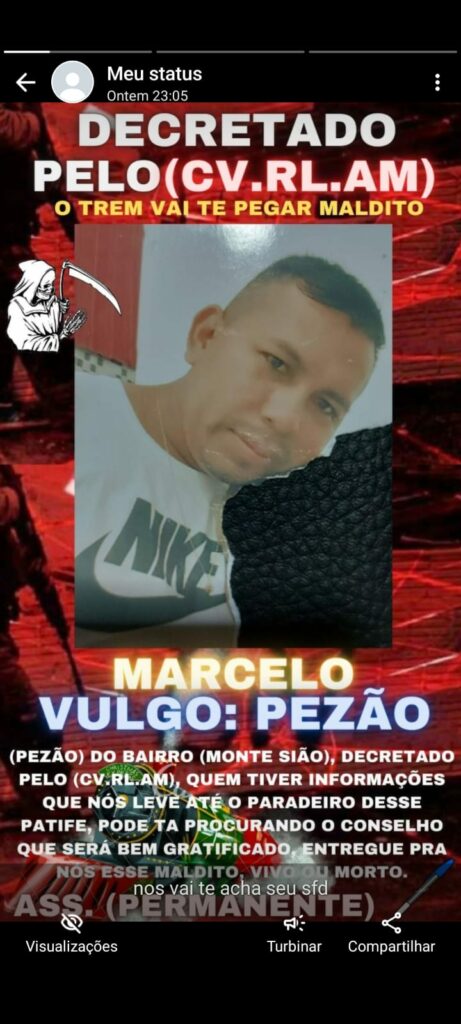 Ainda segundo relatos, a vítima era membro da facção criminosa Primeiro Comando da Capital (PCC) e recentemente teria tido sua morte decretada pela organização rival, Comando Vermelho (CV).