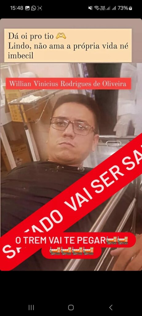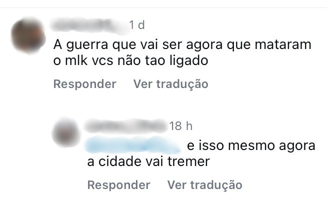 “Foi mexer com o filho do dono. Com o Sheik. Logo com o Sheik, filho do Gelson. Foi mexer com traficante. Eles tavam bebendo juntos, tá ligado? Aí ele foi tocar no moleque. Foi tocar no filho do dono. Onde já se viu isso? Boa sorte pra ele (…) Suspenderam o balão dele mesmo. Não tem essa, não. O crime, o bagulho é doido”.